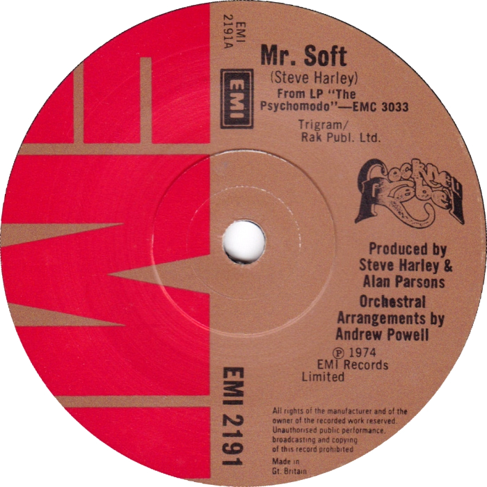 “Mr. Soft” was released by EMI Records on 26 July 1974 as the second single from Cockney Rebel’s second studio album, The Psychomodo. The song was written by Steve Harley, and was produced by Harley and Alan Parsons. It was Cockney Rebel’s second UK hit, where it reached number 8 in the charts.
